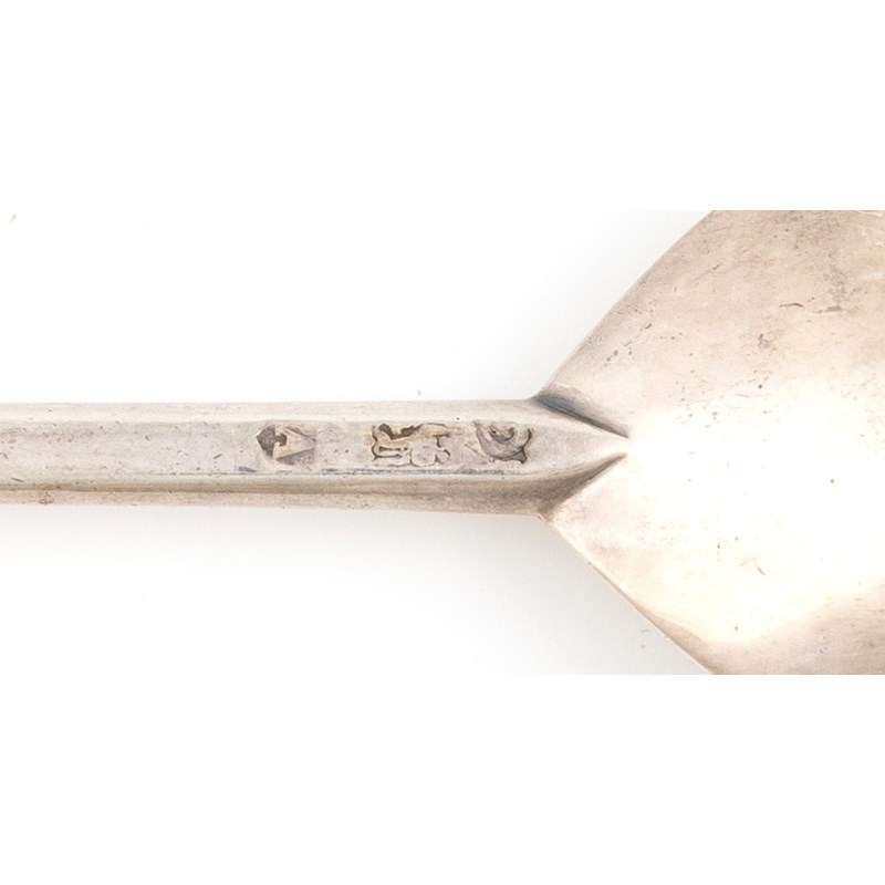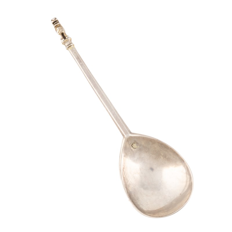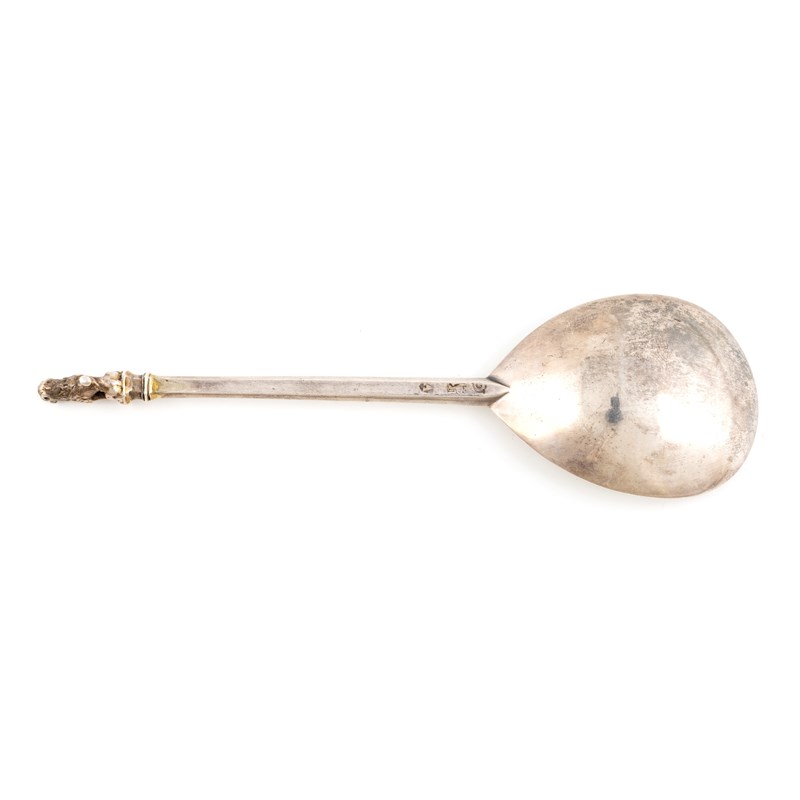 oval bowl, faceted tapering stem, the lion finial with traces of gilding, length 16.9cm, approx. weight 1.5oz.