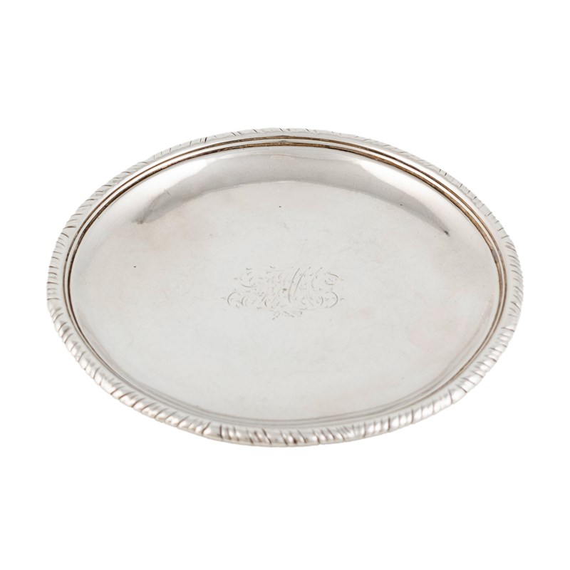 circular form, gadroon border, the centre with initials, diameter 11.7cm, approx. weight 3oz.