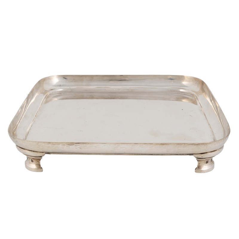 rounded plain square form, on four curved bracket feet, length 26.4cm, approx. weight 36.8oz.