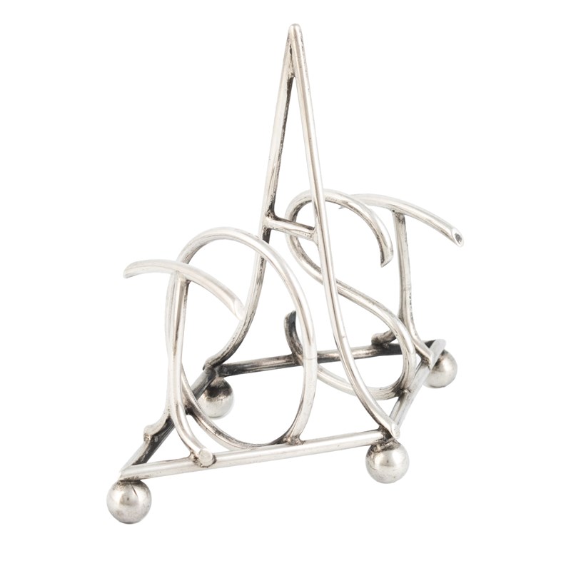 the bars modelled as the letters of toast, on a lozenge base on four ball feet, length 12.3cm, approx. weight 3.1oz.
