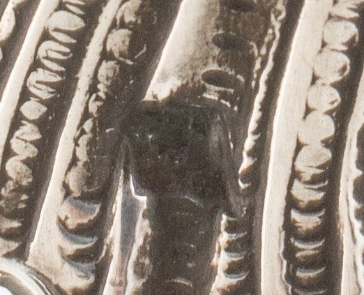 baluster form with a spiral glass body, the mounts with floral scroll decoration, engraved crest, height 26.5cm.