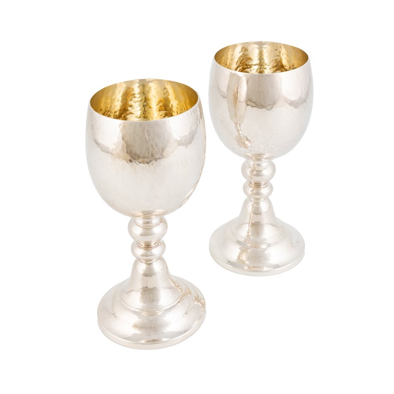 circular form with spot-hammered decoration, knopped stem on a circular foot, height 16.4cm, total approx. weight 13.9oz.