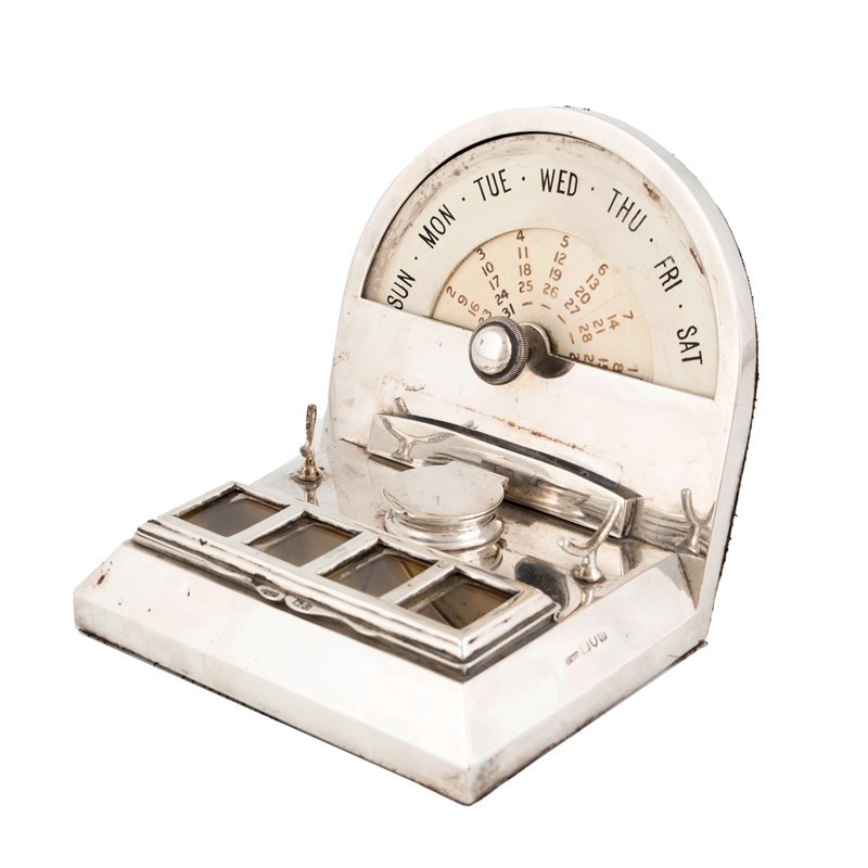 An Edwardian silver calendar inkstand,