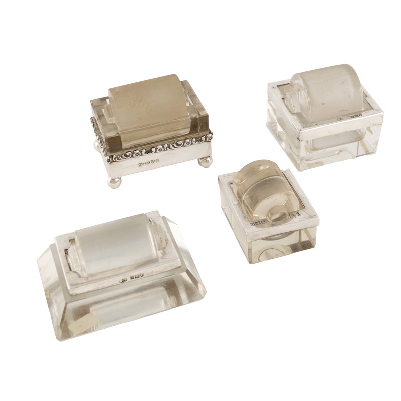 Four silver-mounted glass stamp moisteners,