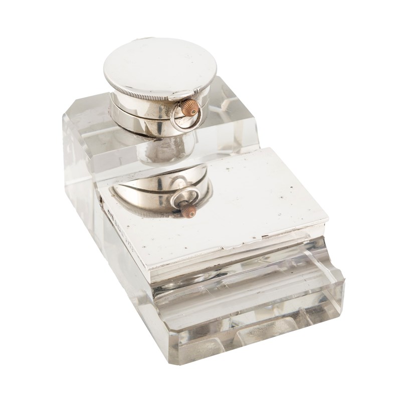 An Edwardian silver-mounted glass inkwell and stamp box,