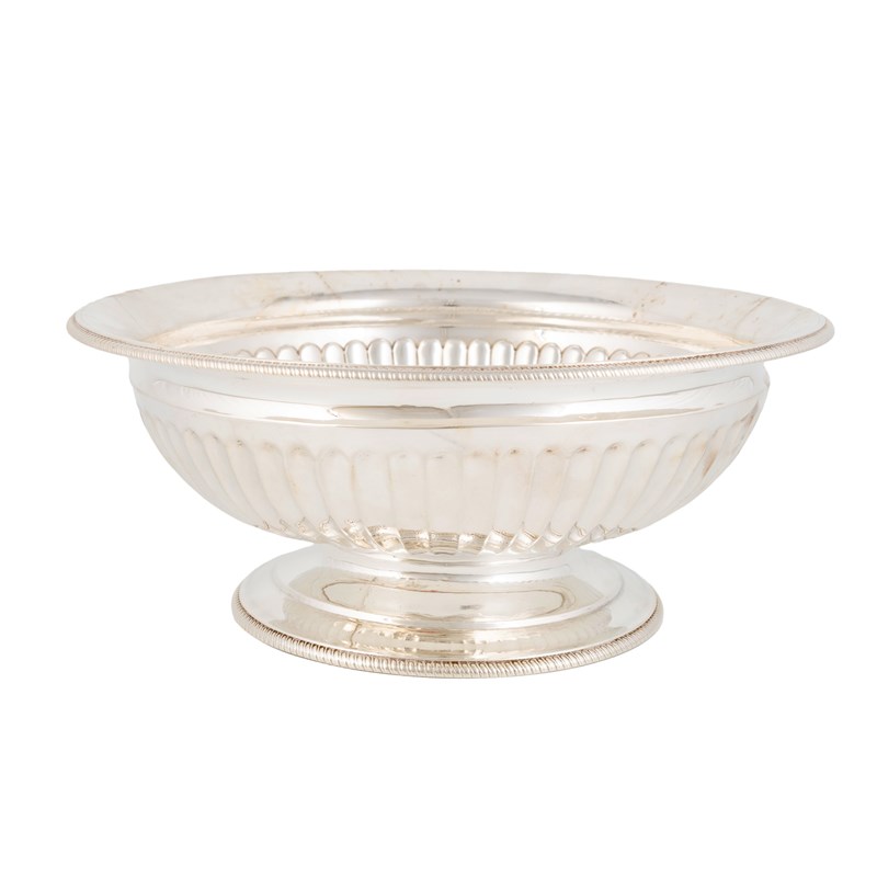 circular form with fluted decoration and gadroonded borders, on a circular foot, diameter 28cm, approx. weight 27.6oz.