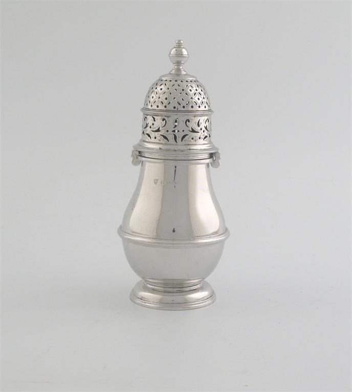 A modern baluster sugar caster, with an applied moulded girdle, and a bayonet fitting cover, by Ellis & Co, Birmingham 1937, 6.75in (17.2cm) high, 8oz.