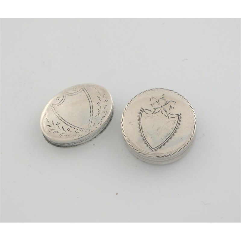 Two George III patch boxes, one circular with gilt interior by Samuel Pemberton, Birmingham, 1798, the other circular by Joseph Taylor, Birmingham 1797. (2)
