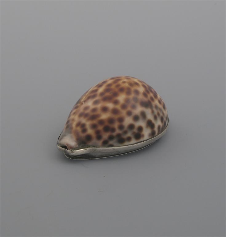 A George III mounted cowrie shell snuff box