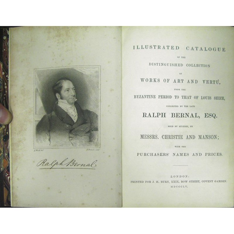 Christie and Manson: Illustrated catalogue of the distinguished collection of Works of Art and Vertu......collected by the late Ralph Bernal, March 5th 1855, half leather bound with marble boards.
