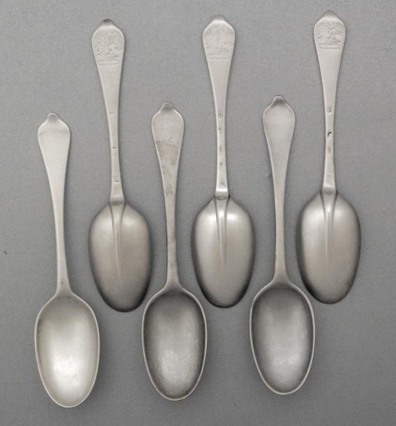 A set of six Queen Anne tablespoons, with plain moulded rattails, crested, maker's mark rubbed, London 1705, 14oz. (6)
