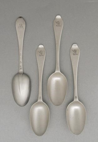A set of four Queen Anne Scottish tablespoons, with plain moulded rattails and late initials 'B' maker, Thomas Ker, Edinburgh 1707, 9oz. (4)
