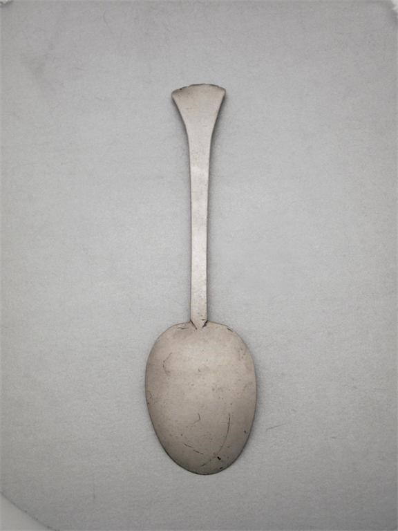 A Charles II spoon, maker unascribed (struck once in the bowl, with a crude fleur de lys, within a pelleted circle), probably Wiltshire/Hampshire, c.1680, 7.1in (18cm). For a similar mark see Kent, T.A, West country spoons and their makers p.158.