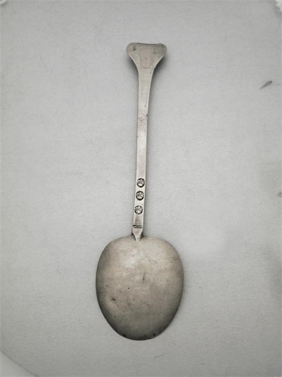 A Charles II spoon, with a stylised bird on the terminal, pricked '1670', maker unascribed (a fleur de lys circular mark struck four times), probably Wiltshire/Somerset, c.1670, 7.55in (19.2cm).
