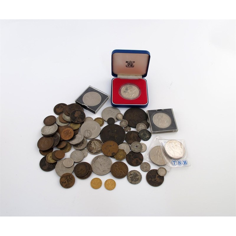 Half-Sovereigns (2), Edward VII, 1907; George V, 1911; together with a quantity of coins, a few silver, proof Crown 1977, bronze medals of Frederick the Great (2). Varied state, with a few better items. (qty)