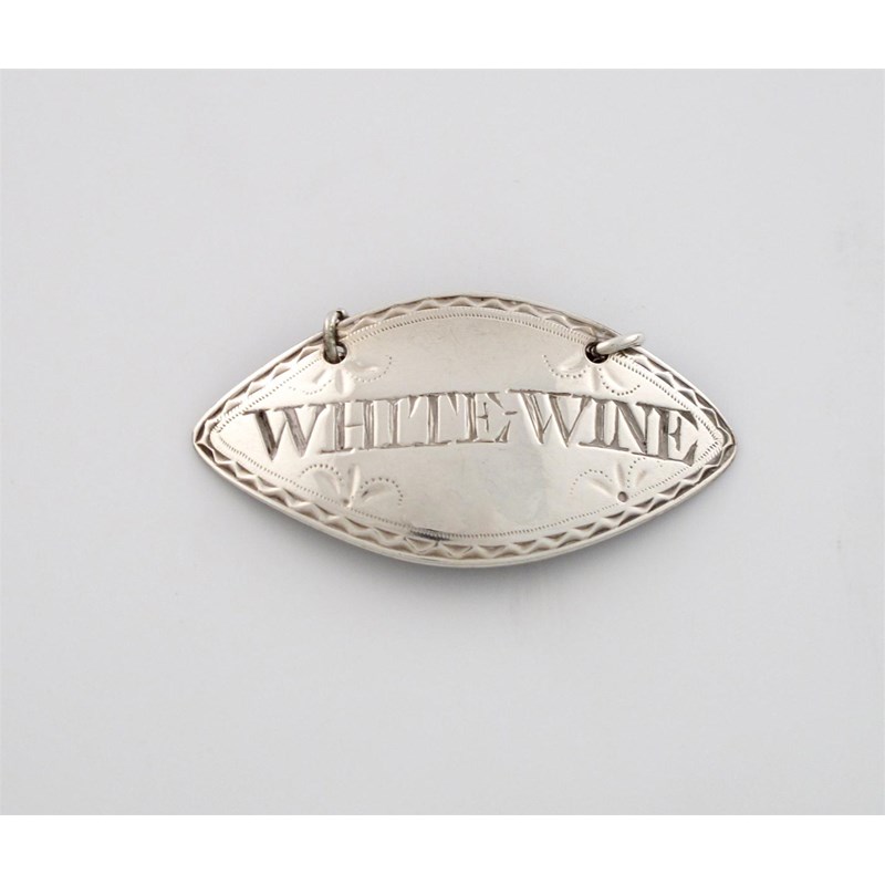eye form, bright-cut borders, incised 'WHITE- WINE', length 4.7cm.