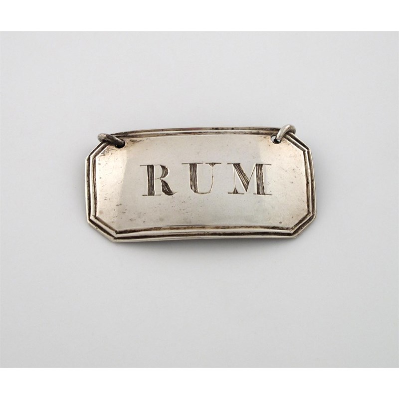 rectangular form, canted corners, reeded border, incised 'RUM', length 4.1cm.