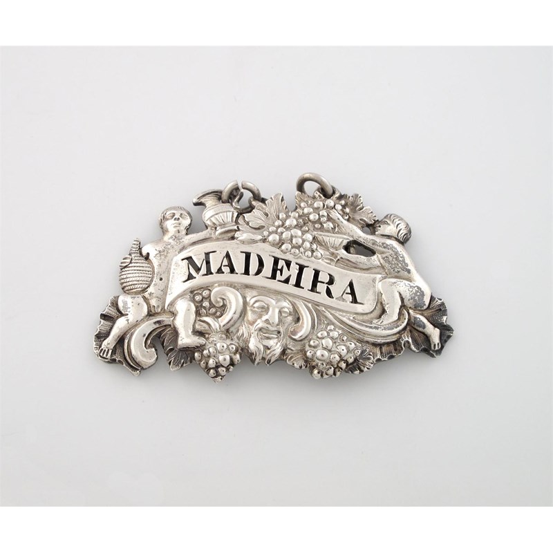 with bacchanalian revellers with a ewer and trailing grapevines, pierced 'MADEIRA', length 6cm.