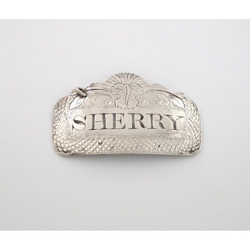 arched rectangular form, foliate and cut border, incised 'SHERRY', length 5.3cm.
