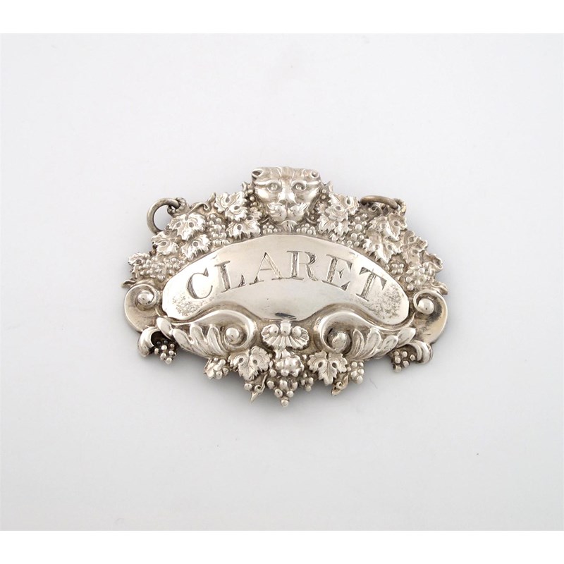 shaped oval form, with a leopard's head mask and vine leaf decoration, incised 'CLARET', length 5.2cm.