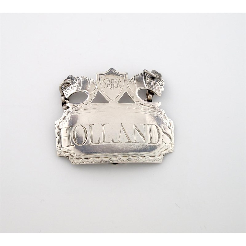 rectangular form, canted corners, bright-cut borders, mounted with a monogrammed shield and cornucopia, incised 'HOLLANDS', length 4cm.