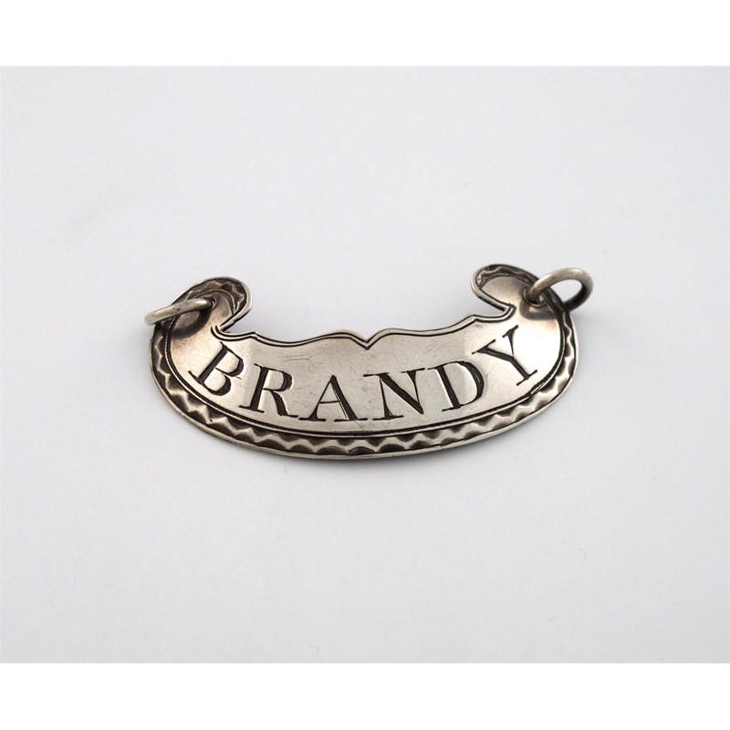 scroll form, bright-cut border, incised 'BRANDY', length 4.7cm.