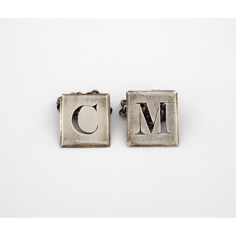 plain rectangular form, pierced 'C' and 'M', height 2.3cm. (2)