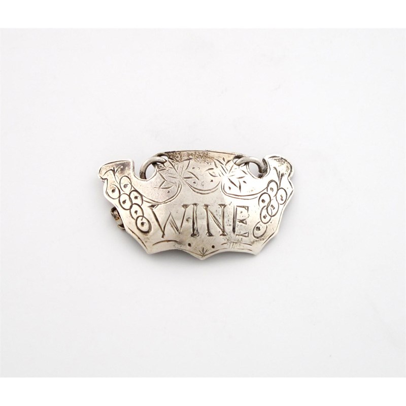 escutcheon form, engraved with bunches of grapes and incised 'WINE', length 3.3cm.