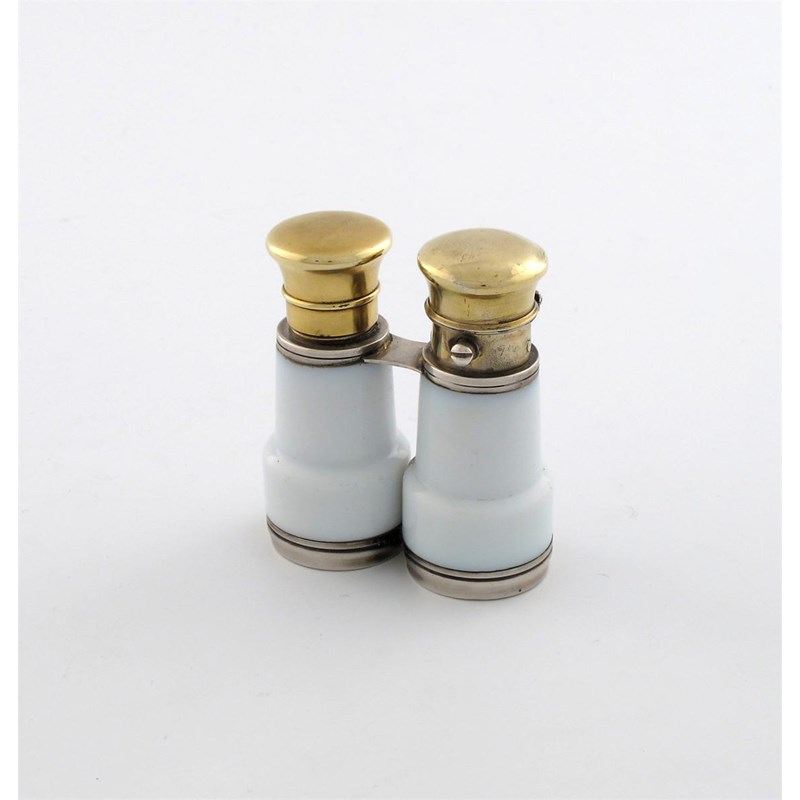 A pair of Victorian silver-gilt and silver mounted white opaque glass binocular scent bottles,