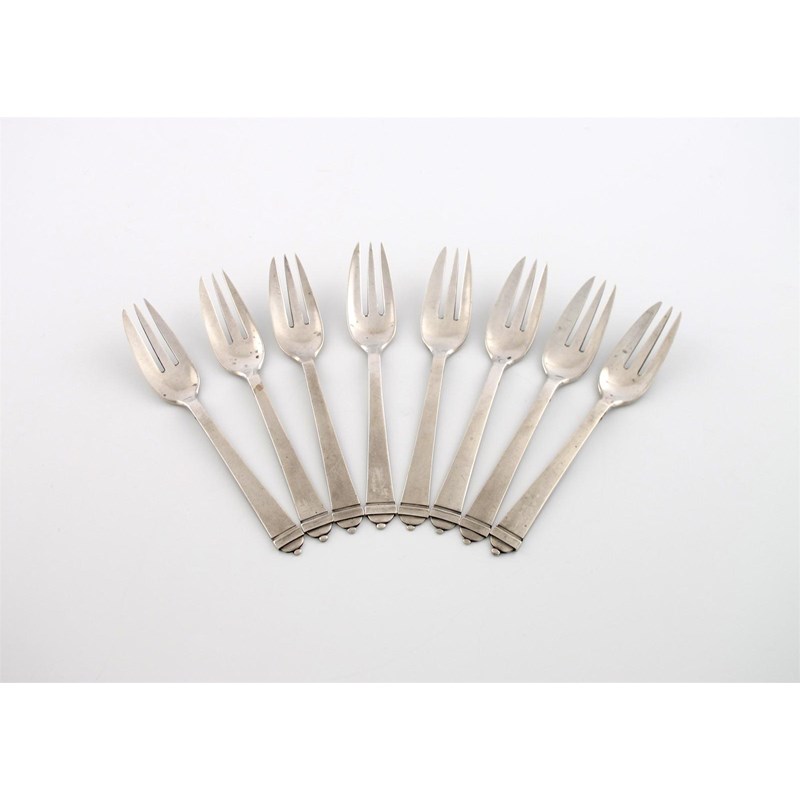 in the Georg Jensen manner, three pronged tines, approx. weight 6.3oz. (8)