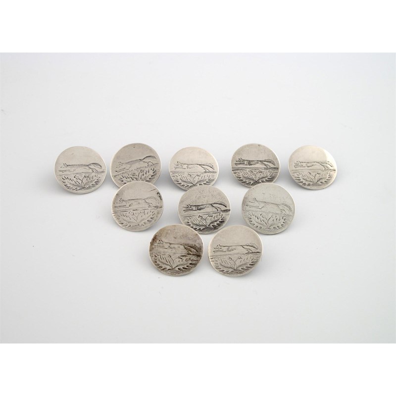 circular form, each engraved with a running fox above a thistle, diameter 2.4cm. (10)