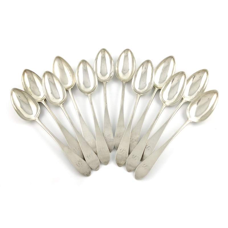 A set of twelve early 19th century Scottish provincial silver Celtic Point pattern tablespoons