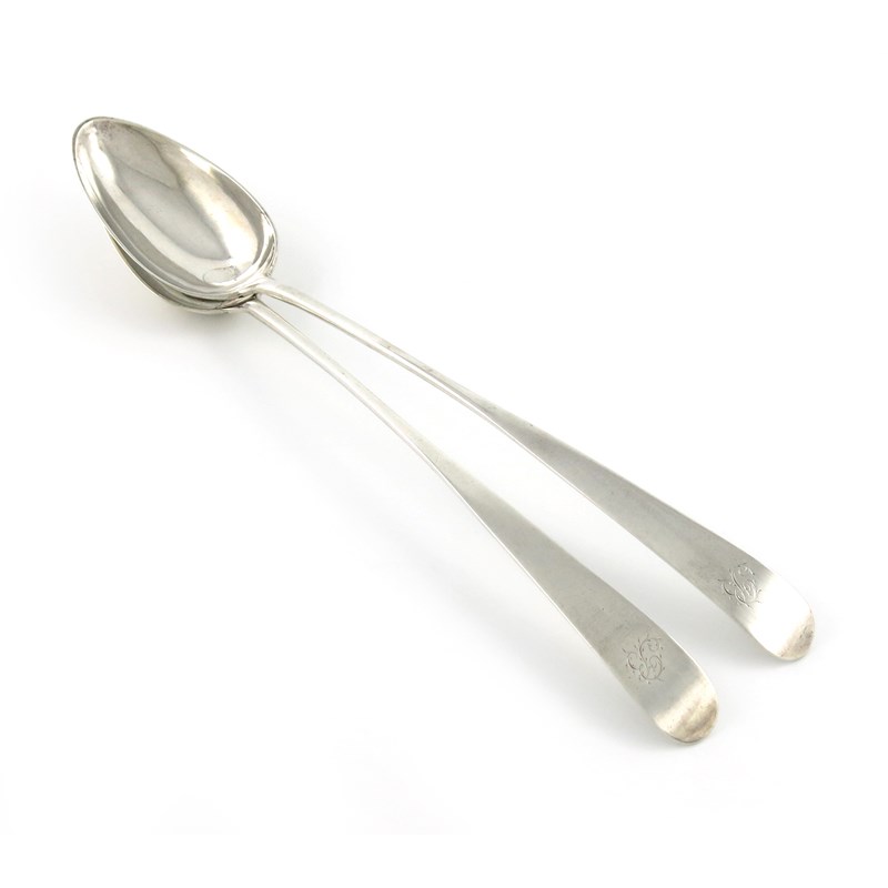 A pair of early 19th century Scottish provincial silver basting spoons,