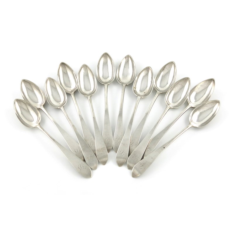 A set of twelve early 19th century Scottish provincial silver Celtic Point pattern dessert spoons