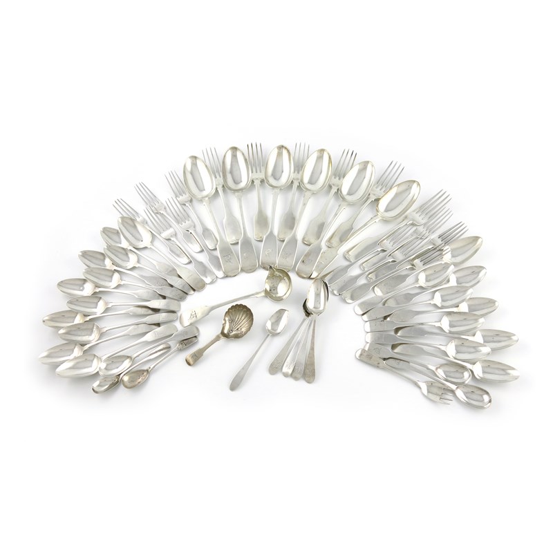 A collection of George III-Victorian Irish silver Fiddle pattern flatware