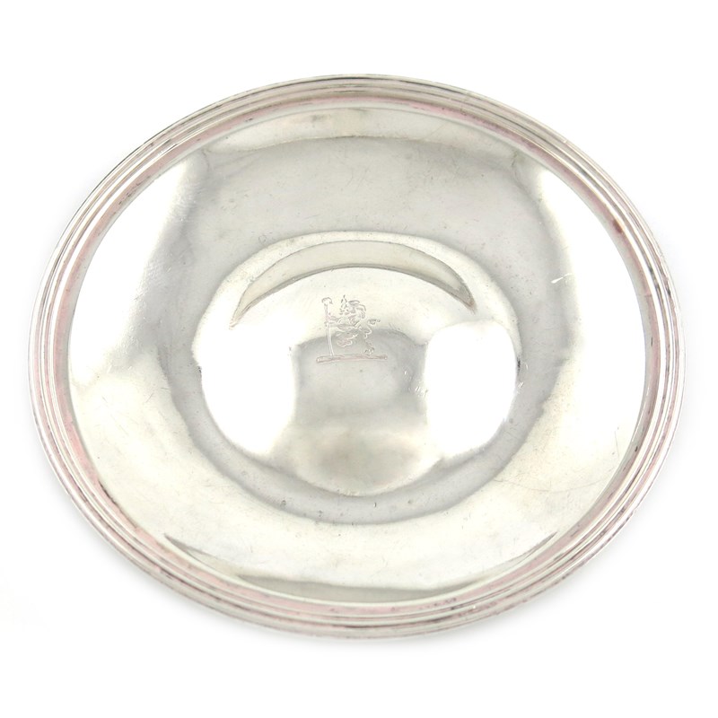 circular form, reeded border, the centre with a crest, diameter 10.5cm, approx. weight 1.9oz.