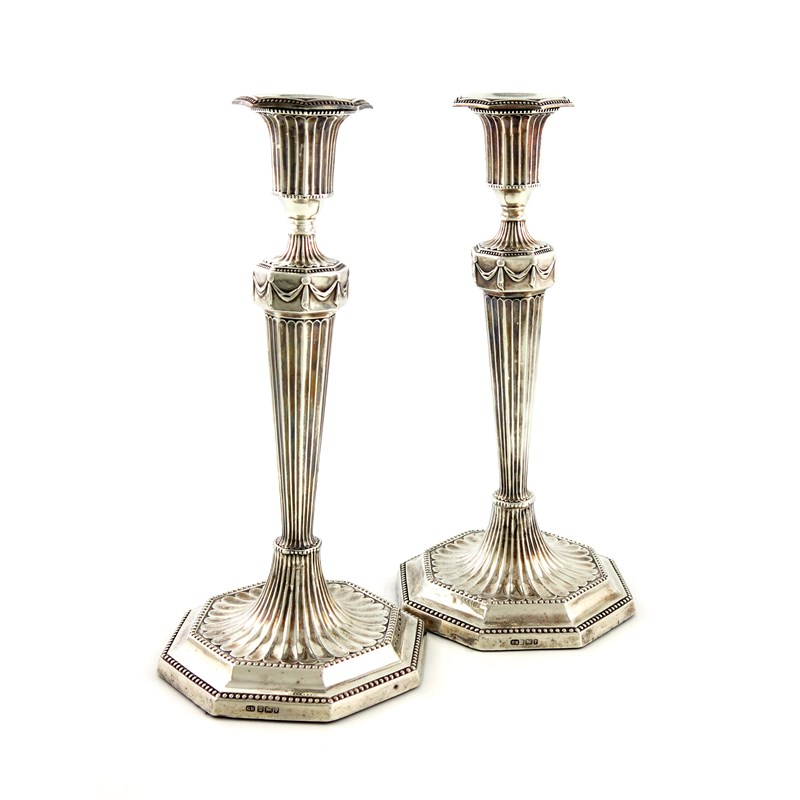 A pair of Edwardian silver candlesticks