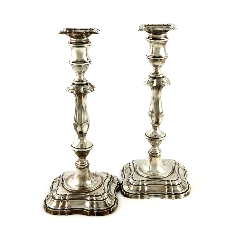 A pair of Edwardian silver candlesticks