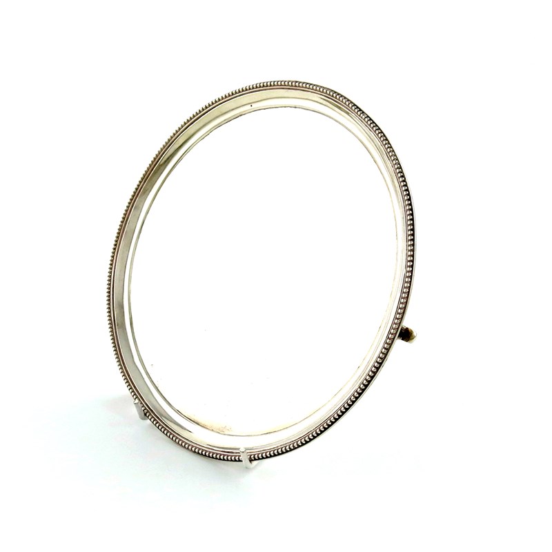 circular form, beaded border, on three beaded bracket feet, diameter 20.6cm, approx. weight 10oz.