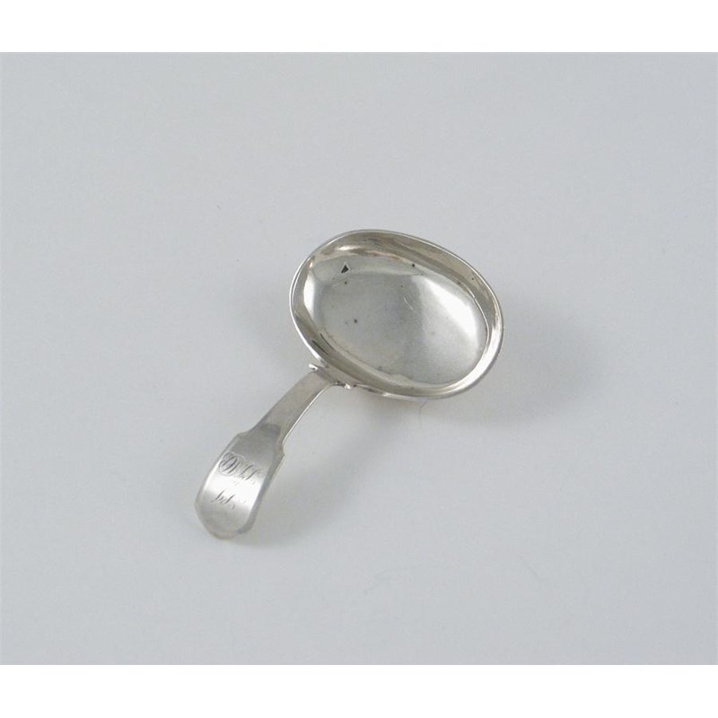 A George III fiddle caddy spoon, initialled, oval bowl, by Josiah Snatt, London 1816.