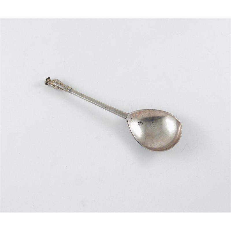 A rare Elizabeth I ascribed North Country apostle, St Paul: the figure with traces of gilding and sword, the back of the bowl scratched with the initials "TT", by Thomas Pinder, York 1593, 6.75in (17cm) long, 1.5oz.