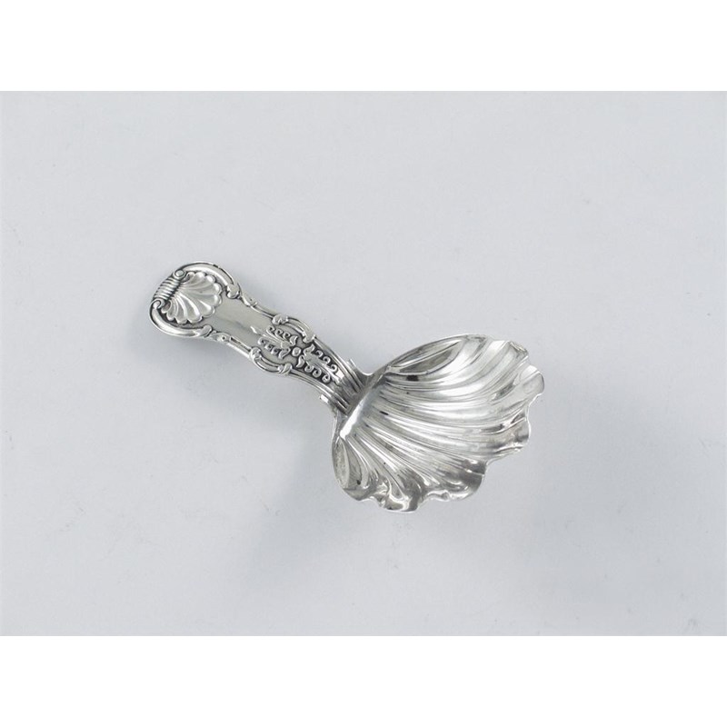 Newcastle: A Victorian provincial caddy spoon, with a Kings pattern stem (single struck) and a fluted shell bowl, by Lister & Sons, Newcastle 1848.