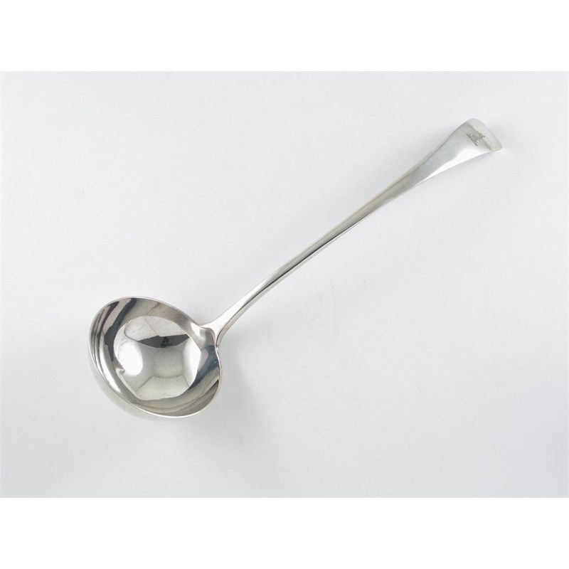 An Edwardian soup ladle, crested, by Jackson & Fullerton, London 1903, 12.75in (32.4cm) long, 9.5oz.
