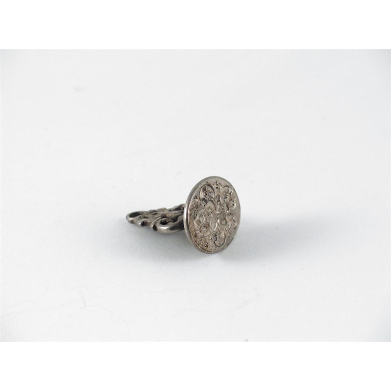 A late Victorian caddy spoon, with an openwork 'lyre'-shaped handle, the bowl in the form of a sun mask, by William Comyns, London 1890.