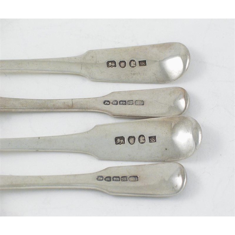 Chinese Export: a pair of fiddle tablespoons, initialled "C" by Sunshing, Canton 1820-30 and a pair of fiddle thread and shell pattern teaspoons, initialled, possibly by Cutshing, Canton c.1850, 7oz. (4)