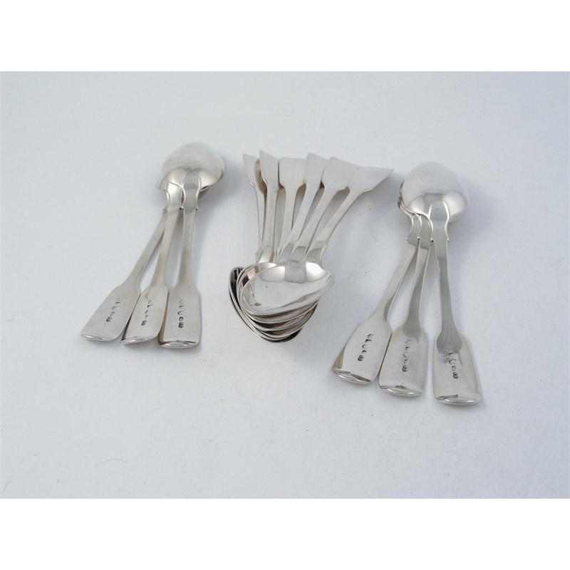 A set of twelve Victorian, York-made fiddle dessert spoons, by James Barber, 1857, 15oz. (12)