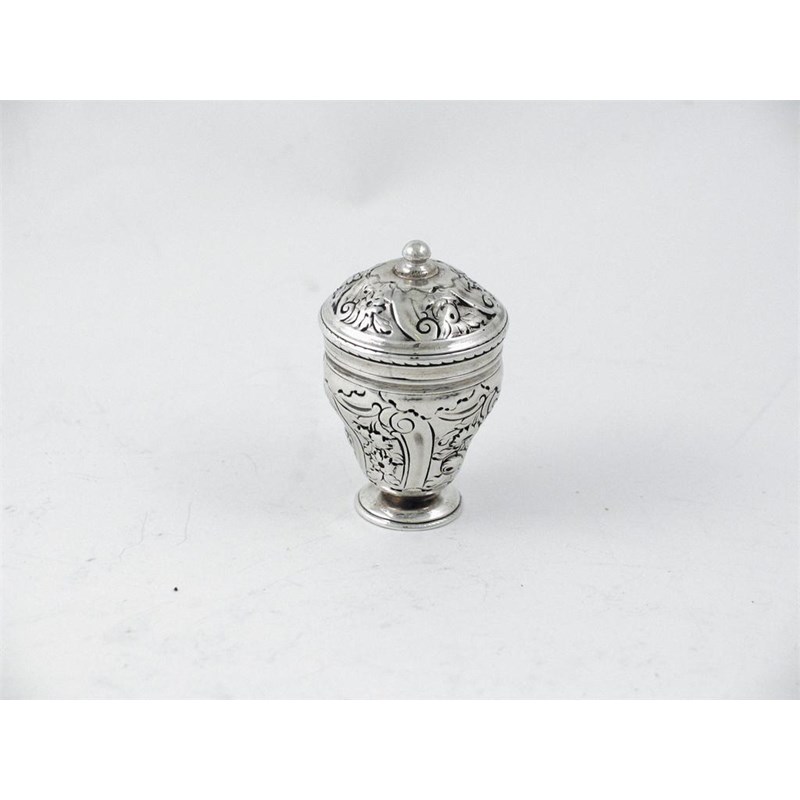 A George II unascribed provincial cream jug, of baluster form on three feet, with a shaped rim, scratched underneath with the initials "L" over "G.M" maker's mark only IB [gothic], struck thrice, probably West Country c.1735, 3.6in (9.2cm) high, 4oz.