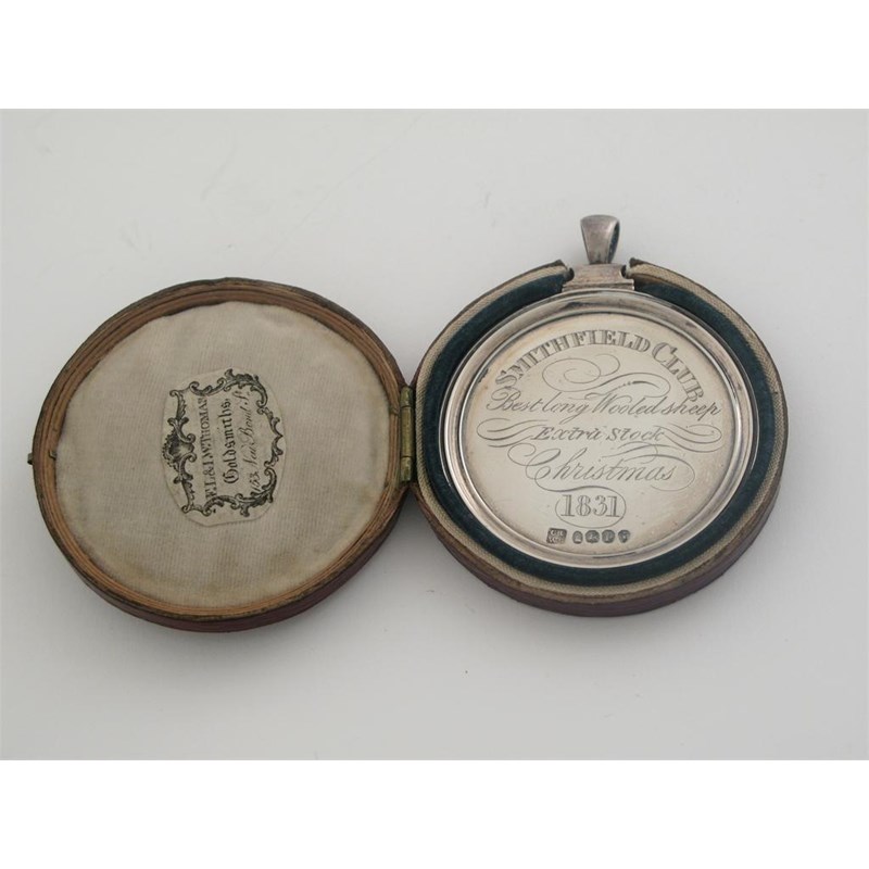 A William IV 'Smithfield Club' medal, for "best long wooled sheep - Extra stock Christmas 1831 - Mr John Freestone Great Harrowden, Northamptonshire" by Charles Rawlings & William Summers, London 1830 (in original fitted case) 2in (5cm) diameter.