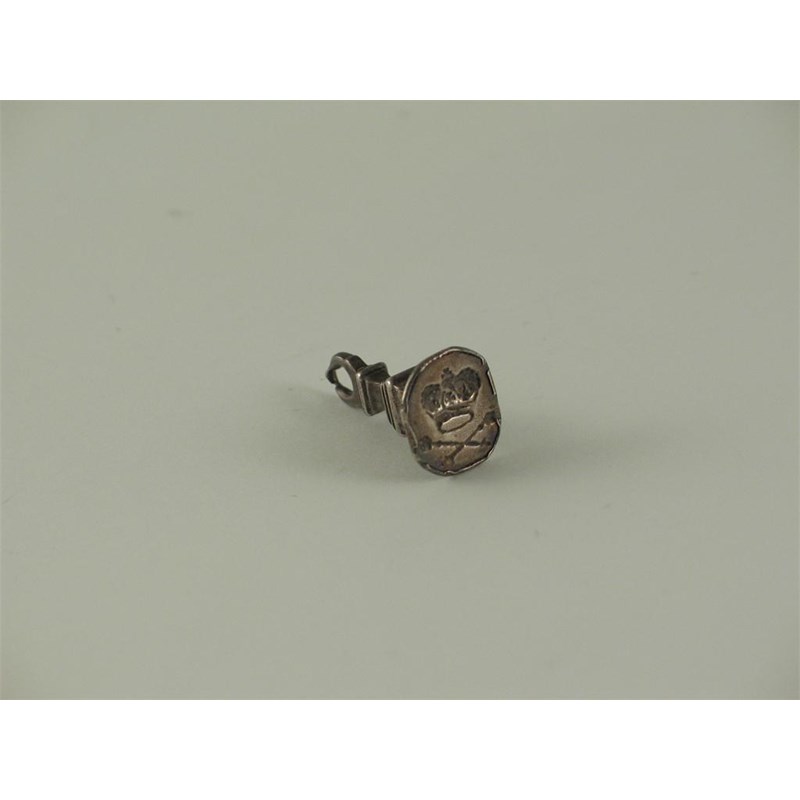 A fob seal with a baluster stem, canted oblong matrix and intaglio " Royal crown and crossed maces", perhaps military significance, 18th century, 1in (2.6cm) high.