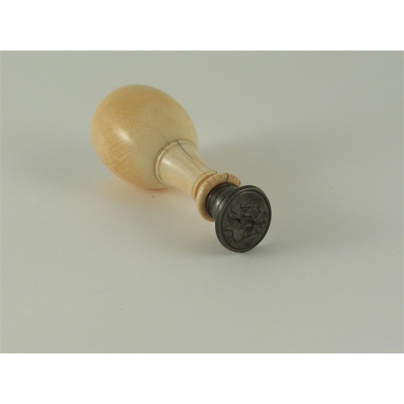 A 19th century turned ivory desk seal, with a cut steel matrix, crested (intaglio), 3.6in (9cm) high.